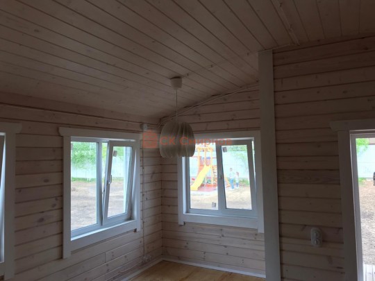 Окна мы устанавливаем настоящие деревянные стеклопакеты с фурнитурой как на пластиковых окнах, дерево используется клееное, повторюсь, не имитация деревянных стеклопакетов, а именно качественные окна.