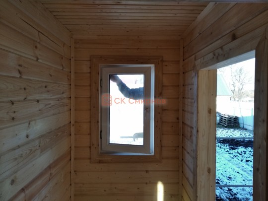 Обязательный элемент брусового дома или бани, это брусок в пиленный в брус в проем двери или окна не менее 50х50мм. Обязательно должен оставаться зазор сверху на усадку и этот брусок не должен быть жёстко закреплен в проеме. В некоторых случаях внутри помещения ставим металлические ройки, уточняйте. Посмотрите отрывок видео как могут повести себя стены