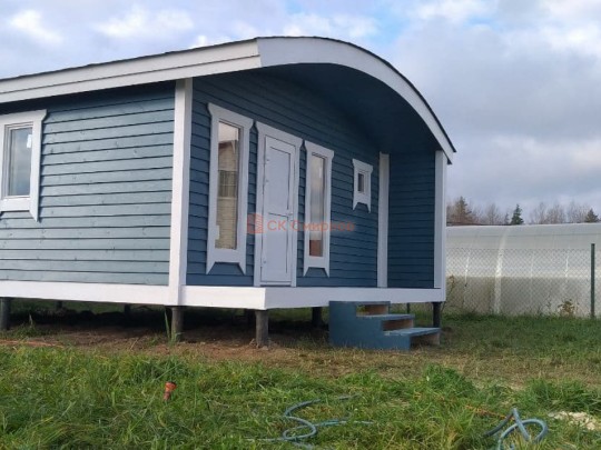 Для строительства этой красивой каркасной бани 5х6 метров СК Смирнов разработал авторский проект №217 с обустроенной парной из алтайского кедра и комнатой отдыха. По планировке общая площадь составляет 32 квадратных метра — есть сауна и просторная жилая комната с впечатляющими панорамными окнами во всю стену.