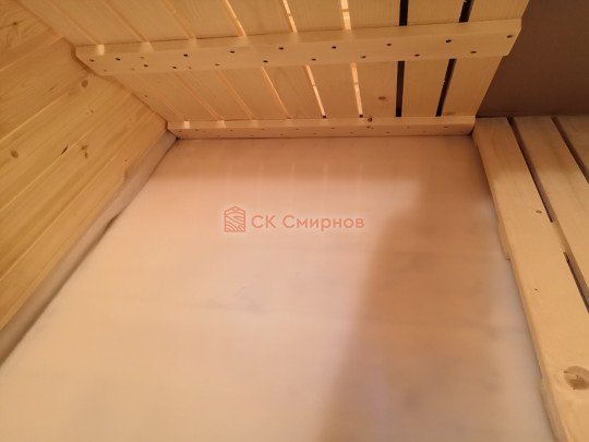 На полу укладывается доска половая толщиной 28мм, крепится саморезами в потай.
