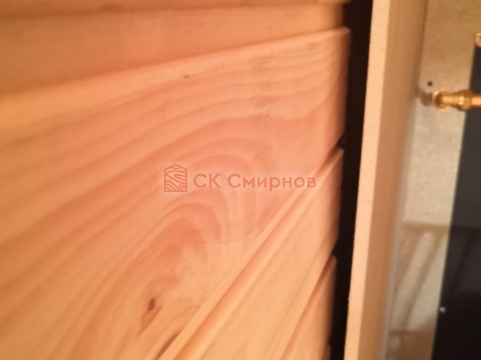 Используется сухая, строганная доска 19х140 доска, покрашенная до сборки, что предотвращает появление полос не прокрашенных после высыхания древесины полностью.