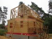 Из профилированного сухого бруса 9х14см, 14х14 см или 14х19 см. Сборка сруба в теплый угол на нагеля или гвозди 200 мм со сверлением отверстия в верхнем брусе (в зависимости от вида бруса).