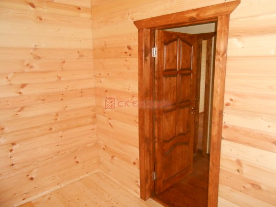 Из профилированного сухого бруса 9х14см, 14х14 см или 14х19 см. Сборка сруба в теплый угол на нагеля или гвозди 200 мм со сверлением отверстия в верхнем брусе (в зависимости от вида бруса).