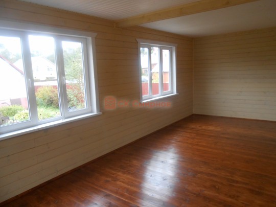 Для строительства сруба был выбран клееный профилированный брус с улучшенным финским профилем 140 на 190 мм. Также сруб был собран со сверлением, чтобы минимизировать возможные проблемы вследствие усадки объекта.
