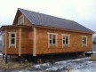 Из профилированного сухого бруса 9х14см, 14х14 см или 14х19 см. Сборка сруба в теплый угол на нагеля или гвозди 200 мм со сверлением отверстия в верхнем брусе (в зависимости от вида бруса).