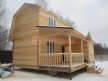 Из профилированного клееного бруса 9х14см, 14х14 см или 14х19 см. Сборка сруба в теплый угол на нагеля или гвозди 200 мм со сверлением отверстия в верхнем брусе (в зависимости от вида бруса).