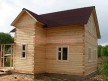 Из профилированного клееного бруса 9х14см, 14х14 см или 14х19 см. Сборка сруба в теплый угол на нагеля или гвозди 200 мм со сверлением отверстия в верхнем брусе (в зависимости от вида бруса).