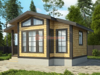 Такая одноэтажная баня 4.8х6.9 может быть построена по каркасной технологии. Ориентировочный срок строительства 10 дней.