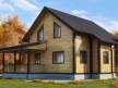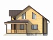 На фото представлен проект надёжного дома №250 габаритами 7.5х9 метров и отличной планировкой общей площадью 124 квадратных метров. Можно выделить несколько особенностей проекта: терраса, эркер, туалет, ванная, санузел, панорамные окна. Особняк полутораэтажный, может использоваться как зимний, для постоянного проживания, коттедж.