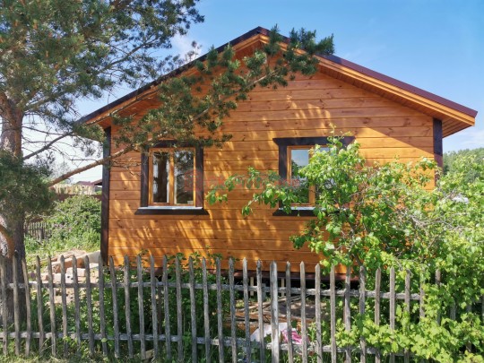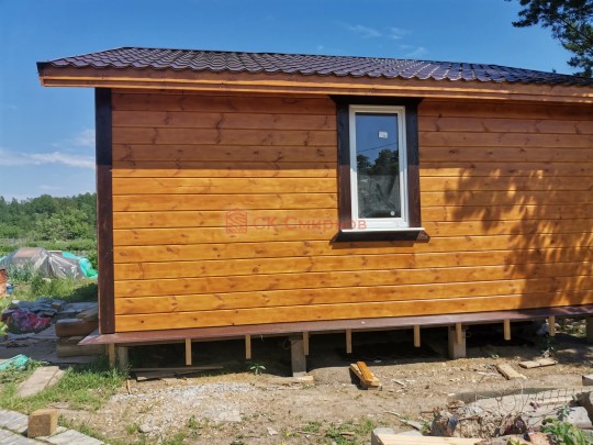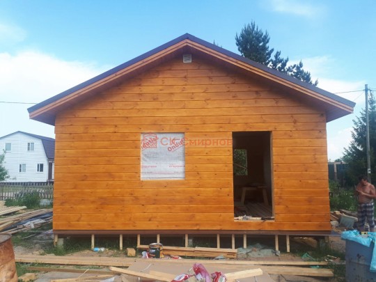 В июне 2020 в самом начале тёплого летнего сезона завершили строительство небольшого дачного домика каркасной сборки под ключ. Дом самый простой, планировка типично дачная, но всё сделано очень аккуратно и из хороших материалов. Это именно тот самый добротный эконом-класс от СК Смирнов.