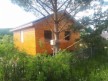 Это одноэтажная дача 6 на 6 с нежилым чердаком (лестницы нет). Пространство внутри разделено на 3 помещения. В основе лежит брусовой каркас, который снаружи обшит имитацией бруса 20х190, а изнутри сортовой вагонкой. Двускатная крыша покрыта хорошей металлочерепицей GrandLine с полимерным напылением. Изначально ставили деревянные стеклопакеты, но в ходе строительства клиент поменял решение и привёз свои пластиковые окна. Входная дверь Аргус 9.